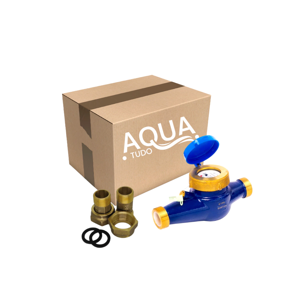HIDRÔMETRO MULTIJATO DN 1.1/2" COM CONJUNTO CONEXÕES METAL LATÃO