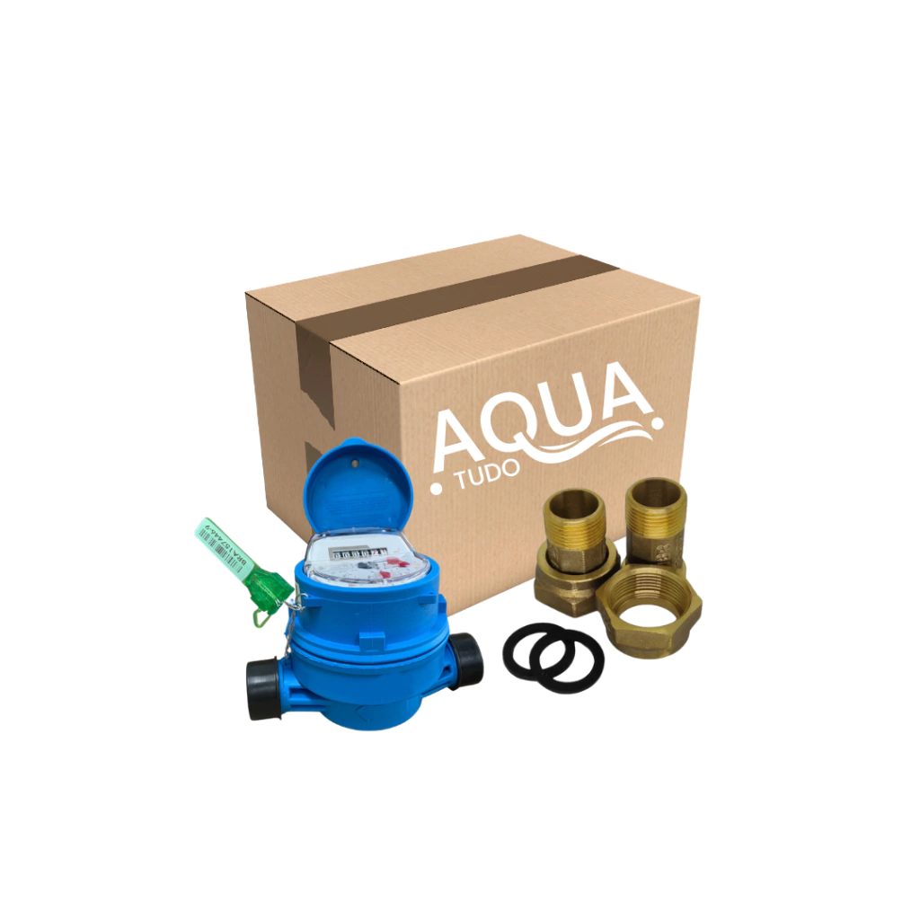 01 – Hidrômetro relógio medidor composite 1/2" unijato com kit de instalação de Latão em Bronze.
