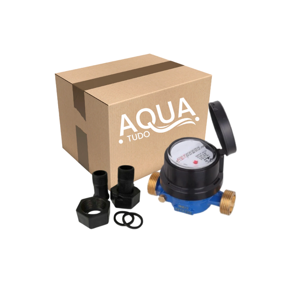 Hidrômetro Unijato de 1/2" x 115mm Vazão Nominal de 1,5m³/h Vazão Máxima de 3,0m³/h com Conexões PP Curto