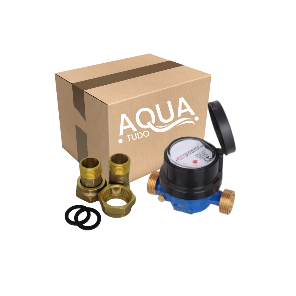 Hidrômetro Unijato de 3/4" x 115mm Vazão Nominal de 1,5m³/h Vazão Máxima de 3,0m³/h com Conexões em Latão Curto